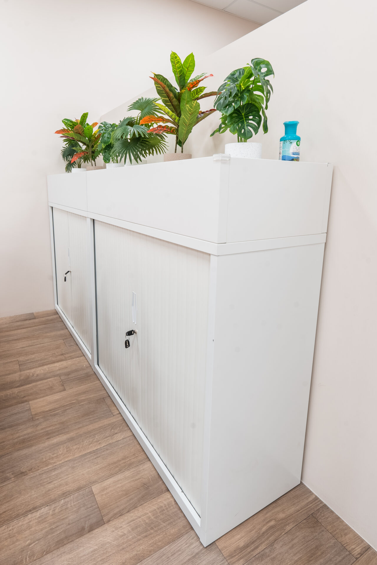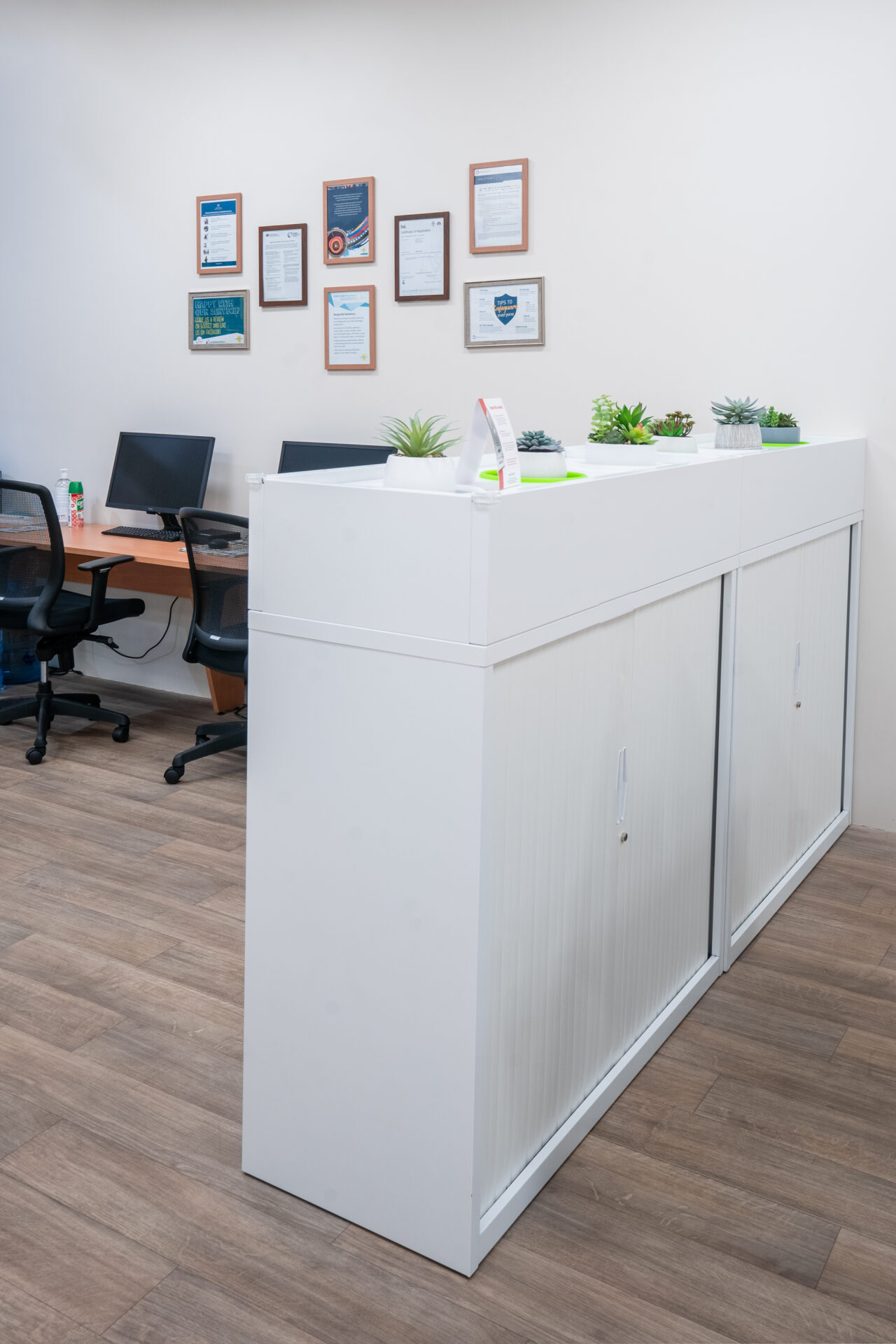 Behind the scenes, simple yet essential amenities were thoughtfully installed to guarantee a comfortable office workspace for employees. At the front of the office fit out, a dedicated boardroom equipped with video conferencing AV was created to facilitate seamless meetings and collaborations. White separators were strategically placed between office spaces, serving a dual purpose as partitions and storage units.