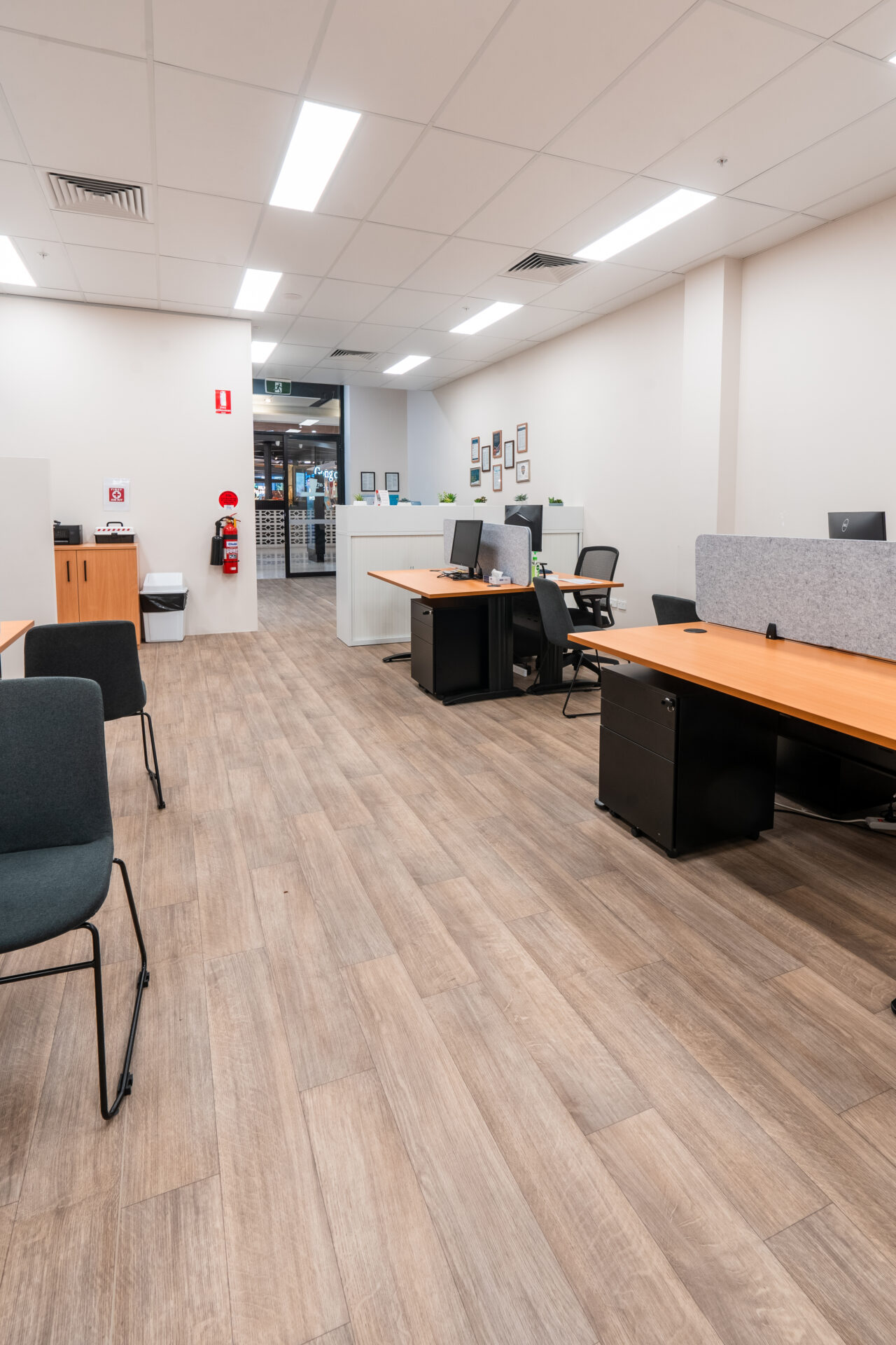 Shopfitting an empty shopping centre tenancy into functional, welcoming commercial office workspace.
