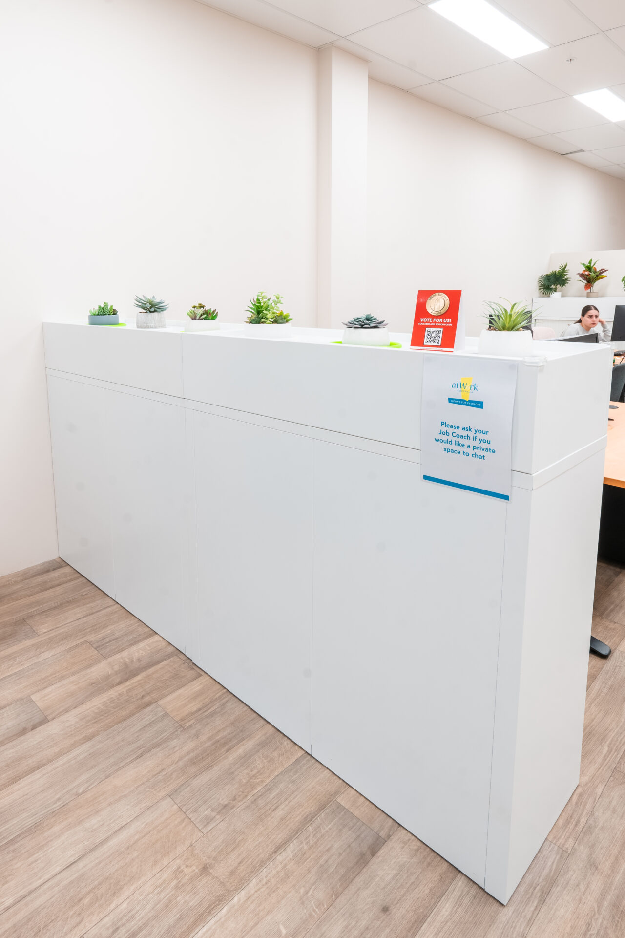 Al Bitic and the Total Fitouts Sutherland Shire team recently completed a commercial office fitout for At Work Bonnyrigg. Located within a shopping centre in Bonnyrigg Plaza, At Work Bonnyrigg is one of Total Fitout’s large corporate clients. The project involved transforming a blank vacant commercial shell into a functional and practical office workspace. The office design and fitout was done in-house by Total Fitouts’ designers, adhering to At Work corporate brand guidelines such as a green colour palette. The size of the tenancy space was 100m2.