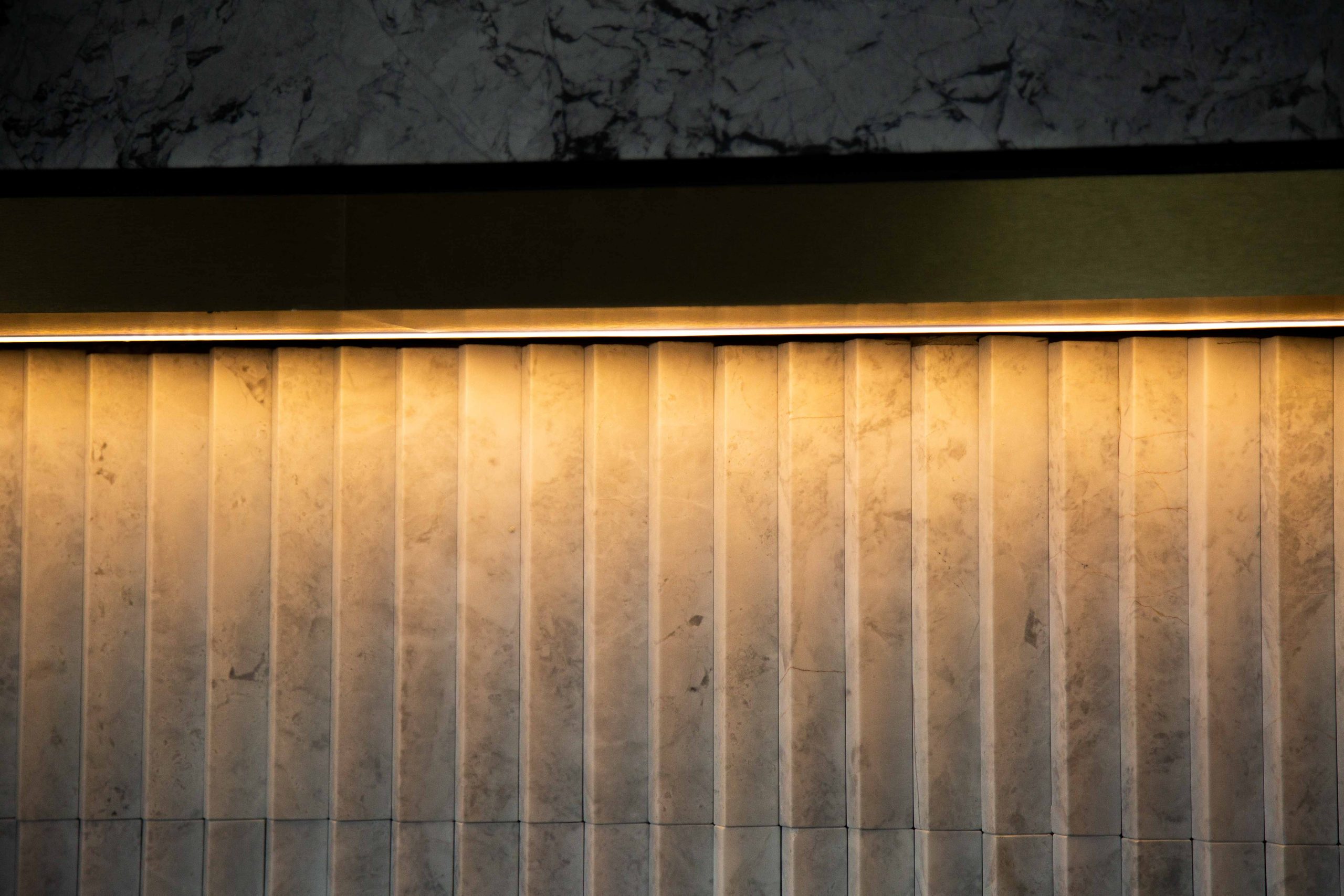 Magnificent polished surfaces across the bar, reception counter and tabletops support the aesthetic direction of the design and lead the customer’s view to the playfully arranged mosaic floor tiles. The noble theme from the interior carries on to the outside: a contrast between splendour and modernity with imposing golden illuminated signage mounted on bright exterior tiles. A stunning fitout brought together by the team at Total Fitouts Surry Hills.