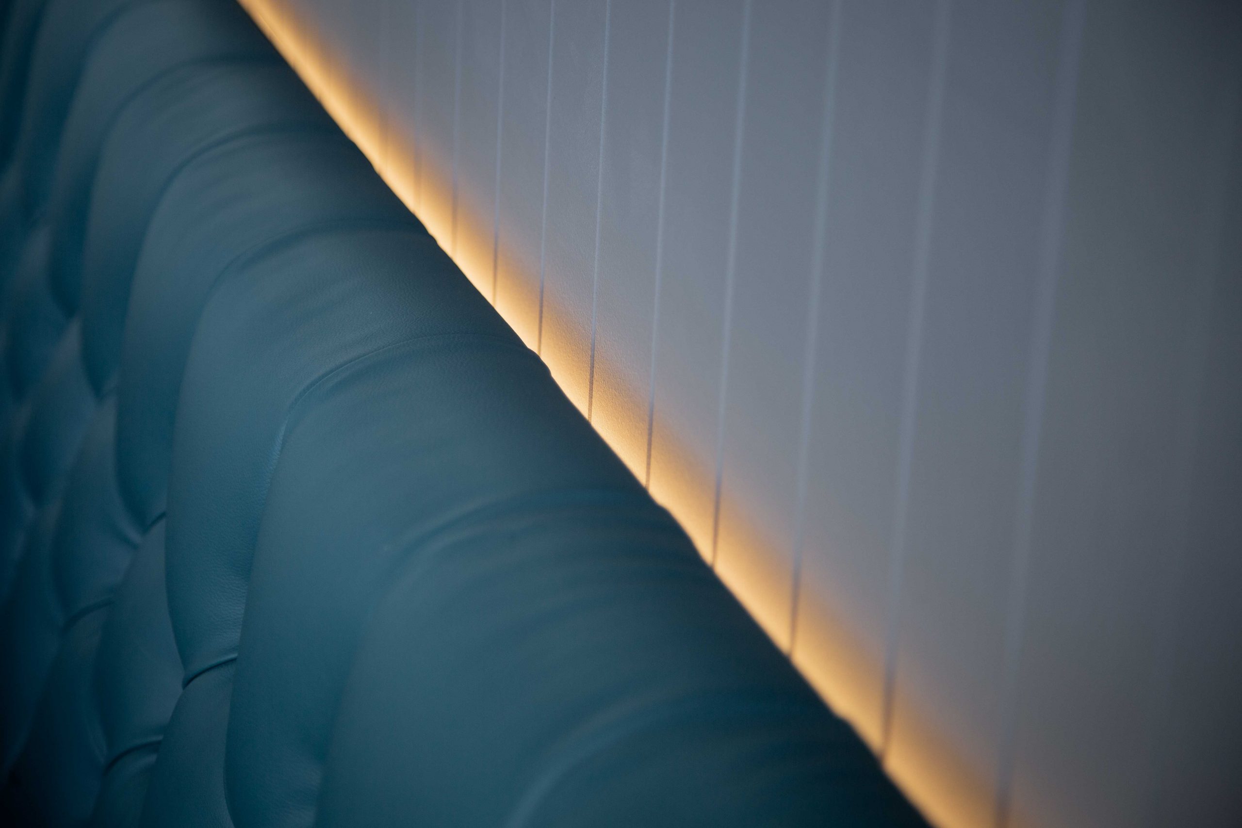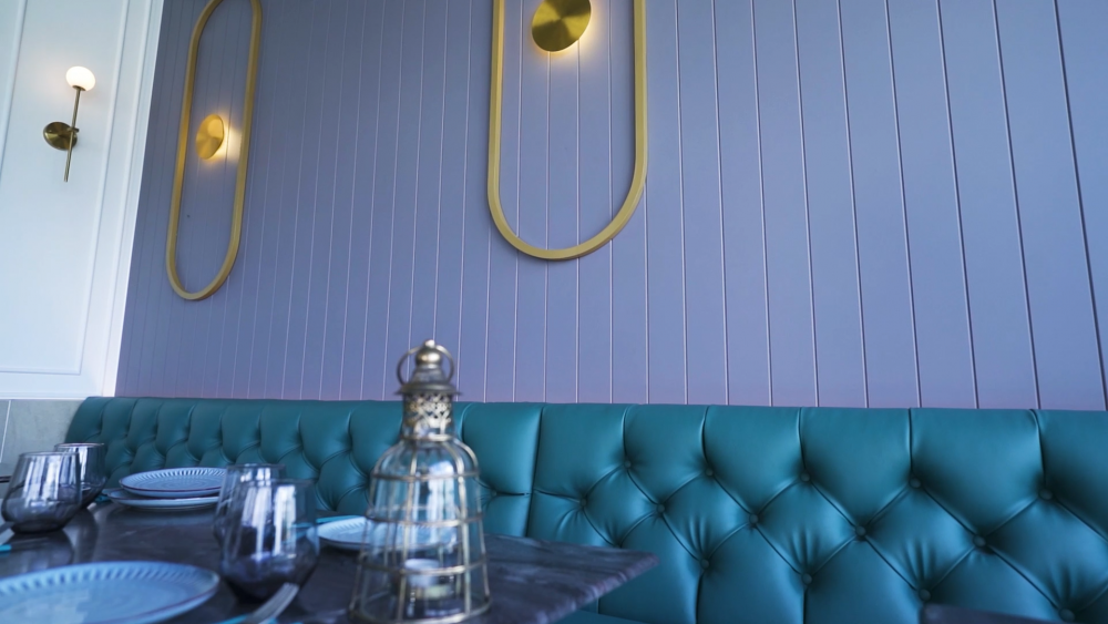 Lazeez just recently opened its doors at Bass Hill Plaza offering a unique combination of top-notch Lebanese Cuisine and a dining experience to match, made accessible for a broad audience. Divided into two areas the customer decides where to be seated as either a casual visitor or a guest for classy fine-dining with an open view to the magic of a five-star kitchen team. The newly drafted space, fitout by the Total Fitouts Surry Hills team, has been created with a deluxe contemporary approach. The hospitality fitout consisted of high ceilings lifted by timber-panelled walls painted in dramatic blue nuances – the ideal backdrop for round golden framed mirrors and light features.