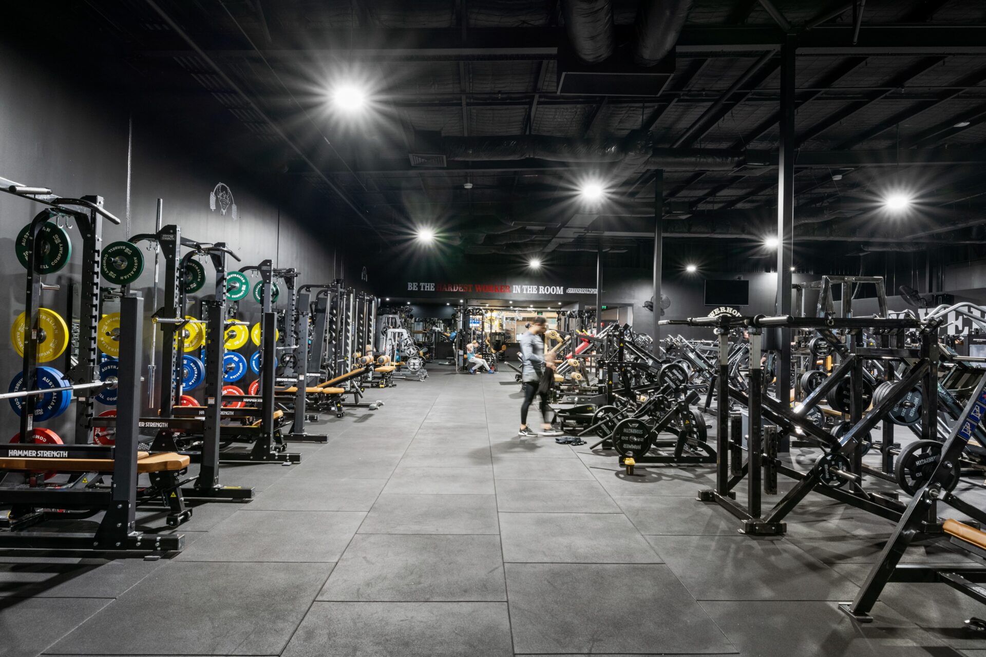 Read more: Powerhouse Gym EliteUnique commercial interior design features within the commercial fitness fit out included cost-effective solutions such as epoxy flooring, completed by Signature Substrates, and economical warehouse lighting, done by Solar Air and Energy, strategically placed to illuminate the space. LED signage adds a touch of modernity and sophistication, enhancing the gym’s visibility and street appeal. Paul Nikolas Painting took care of the painting of the space, bringing it to life. Arco Door Systems provided and installed a security door system for gym membership usage, and Rapid Glass installed mirrors as well as fixed glaze panels that was used between the retail space and the gym to section off the areas.